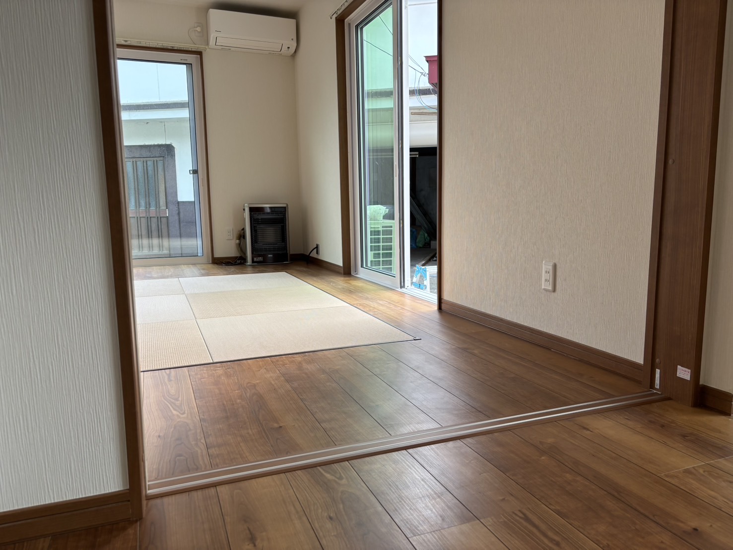 和室はこのような洋室に生まれ変わりました。サッシは既存の外壁と同調が取れていて違和感なく収まっています。